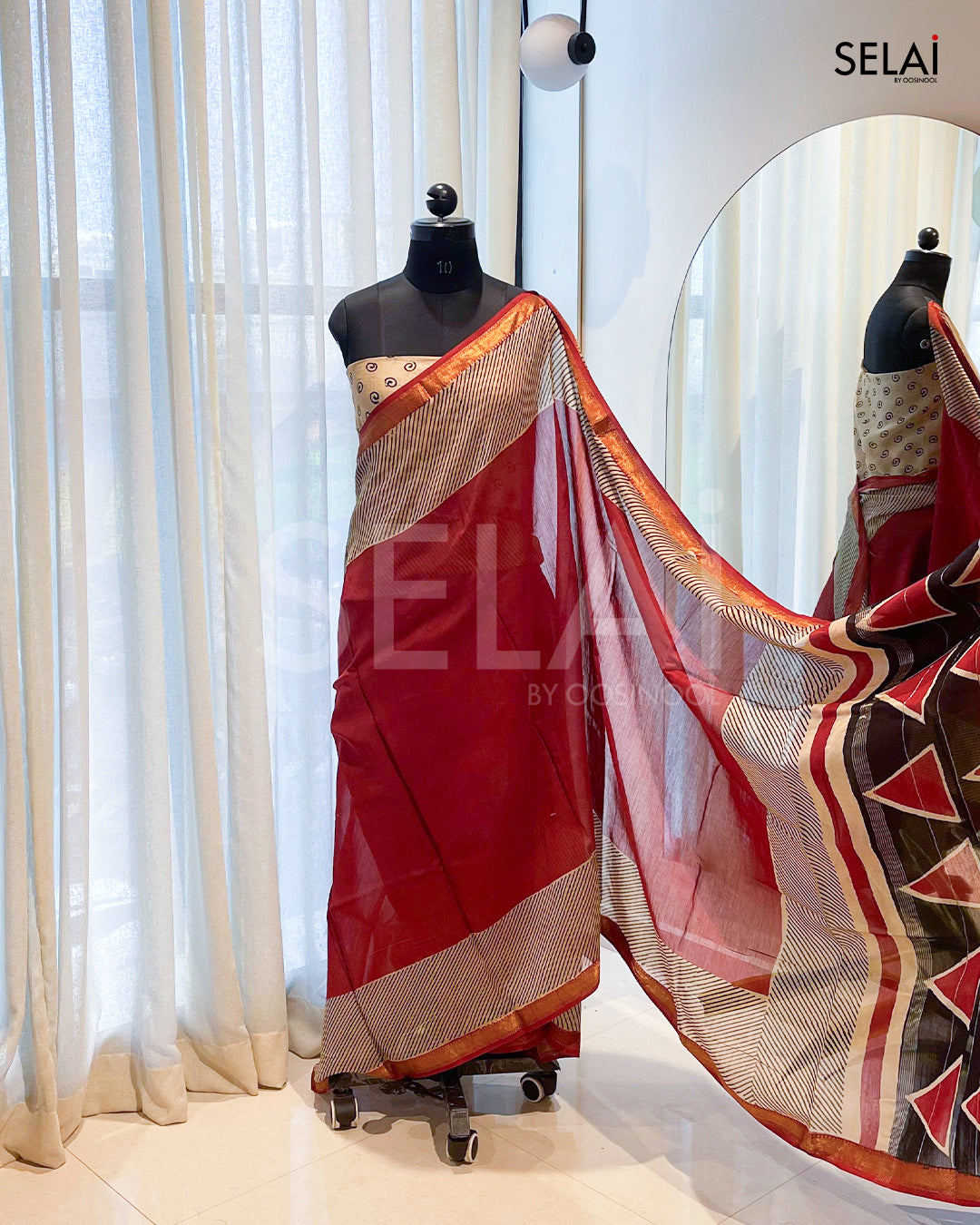 Soft on the skin and easy to drape, this Chanderi Cotton Saree with contrast Border is made for daily wear. The hand-block design keeps it classic, while the Floral design adds a cheerful edge. Light, airy, and fuss-free — perfect for your 9 to 5 or a stroll to the market.