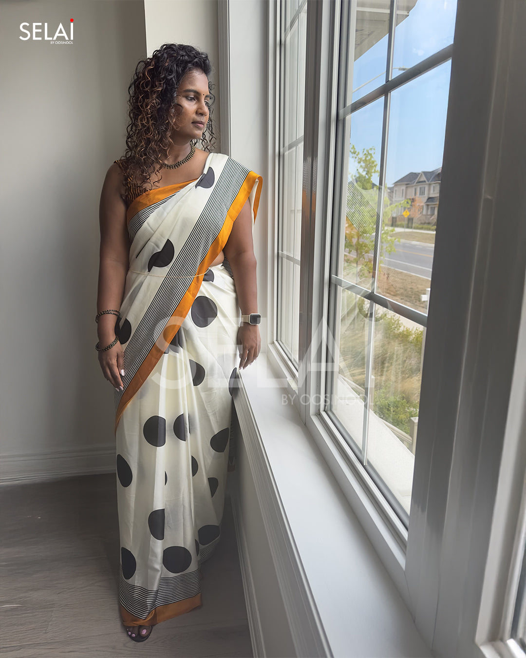 Satin Polka Dot saree (Mustard)