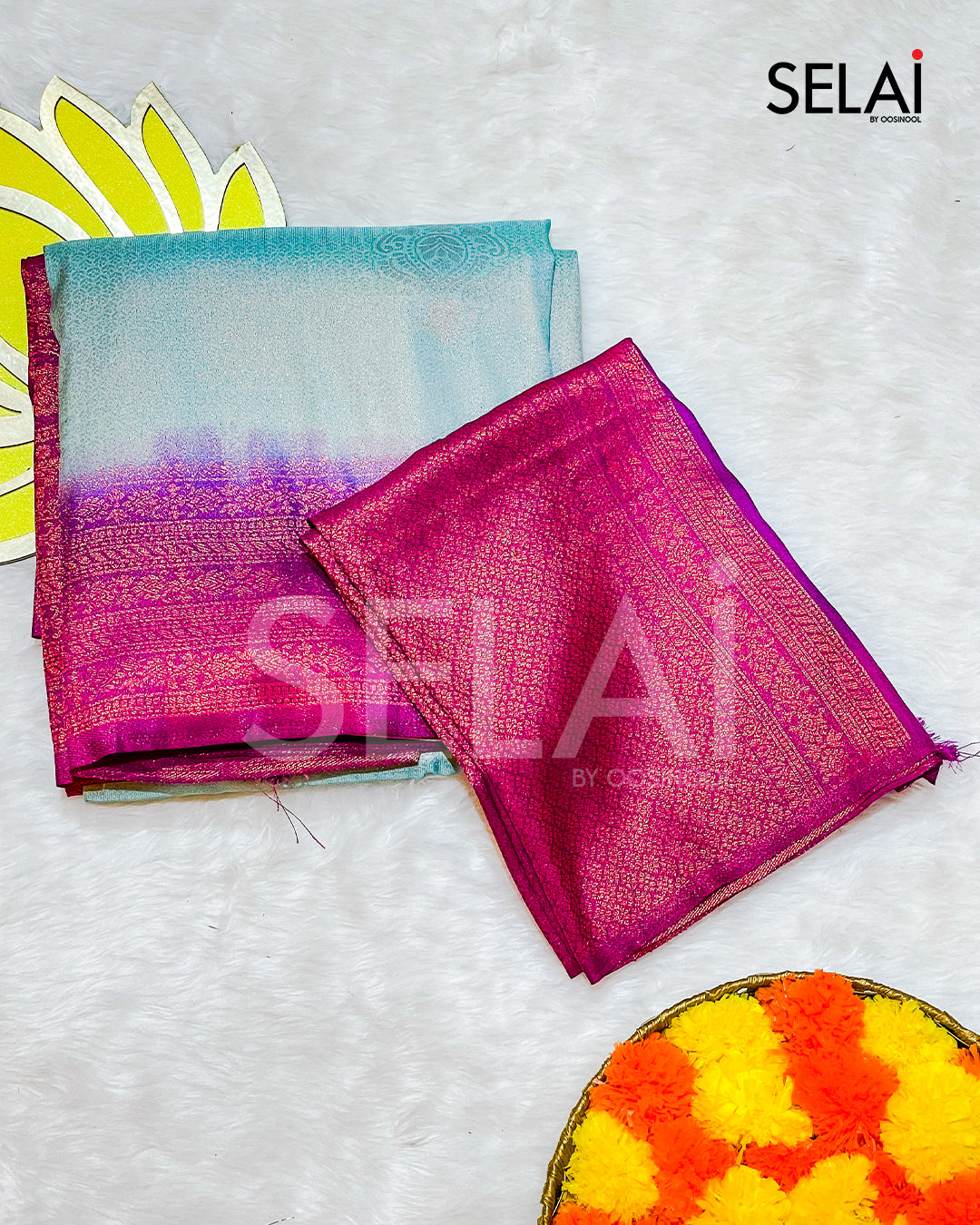 - Blouse Fabric: Contrast semi-silk (Unstitched)