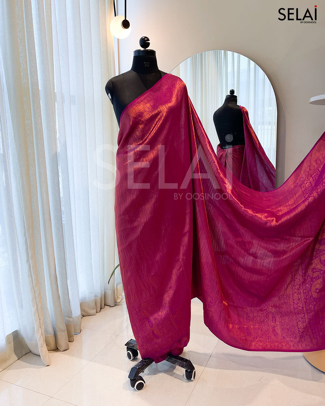 - Semi silk fabric offering a graceful drape and silk-like richness