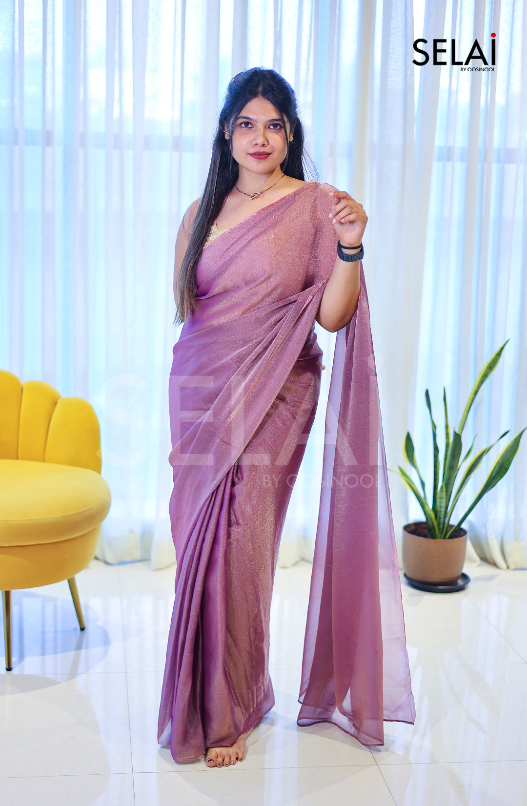Step into the spotlight with this dazzling shimmer georgette saree, where elegance meets convenience.