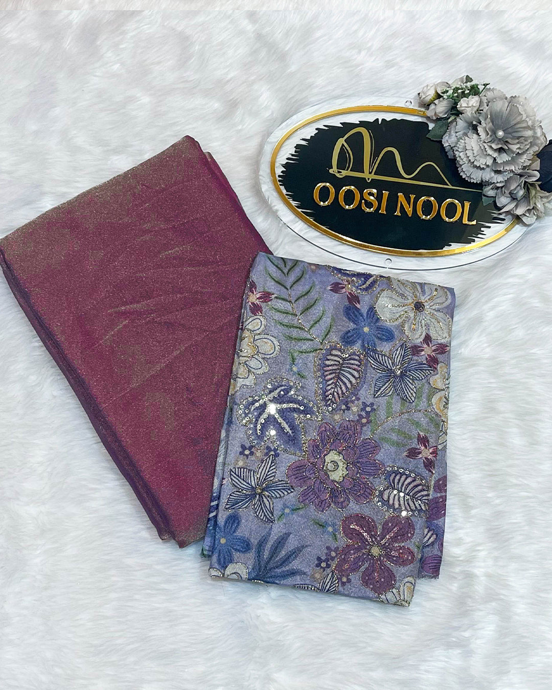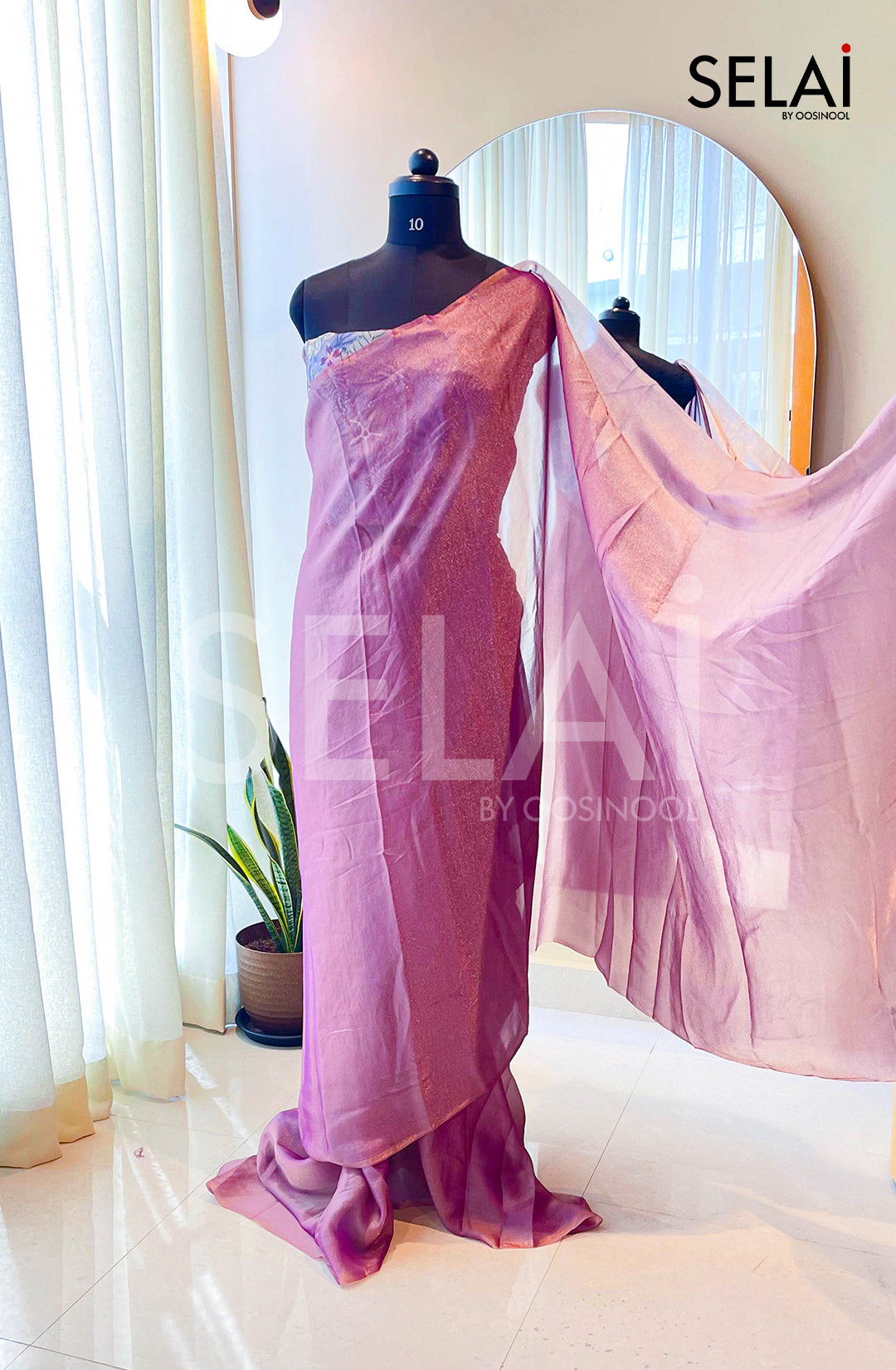 Shine effortlessly with our Shimmer Georgette Saree, designed to add a touch of glamour to your wardrobe. The delicate shimmer finish enhances the saree’s elegance, making it a perfect choice for evening parties, festive celebrations, and special occasions.