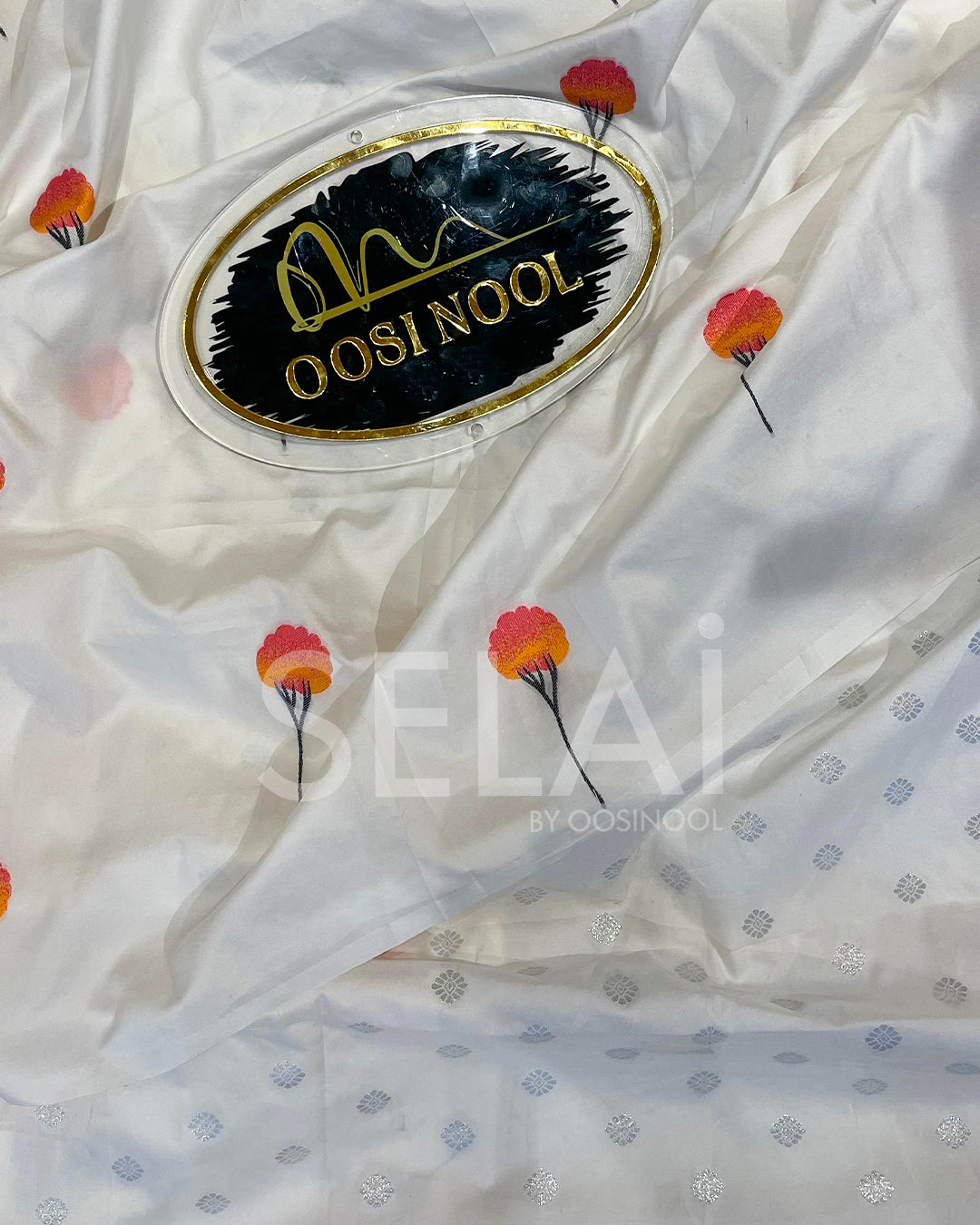 Graceful and contemporary, this white soft silk saree is adorned with delicate orange and pink floral buttas scattered across the body. The minimal design paired with the natural sheen of soft silk creates a refined look that’s perfect for both casual elegance and special gatherings. The lightweight drape and smooth texture make it an effortless choice for all-day comfort while still exuding sophistication.